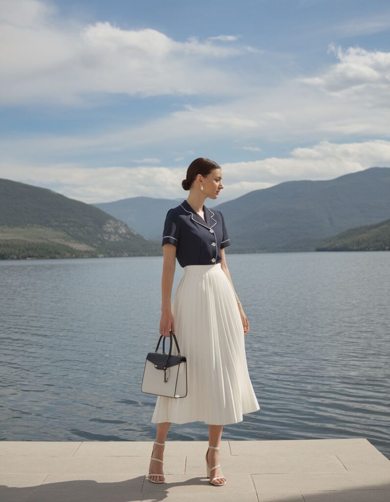 Old Money style uses soft colors like navy, gray, and brown. It likes simple patterns and looks neat. Accessories are simple, like classic jewelry and nice handbags.